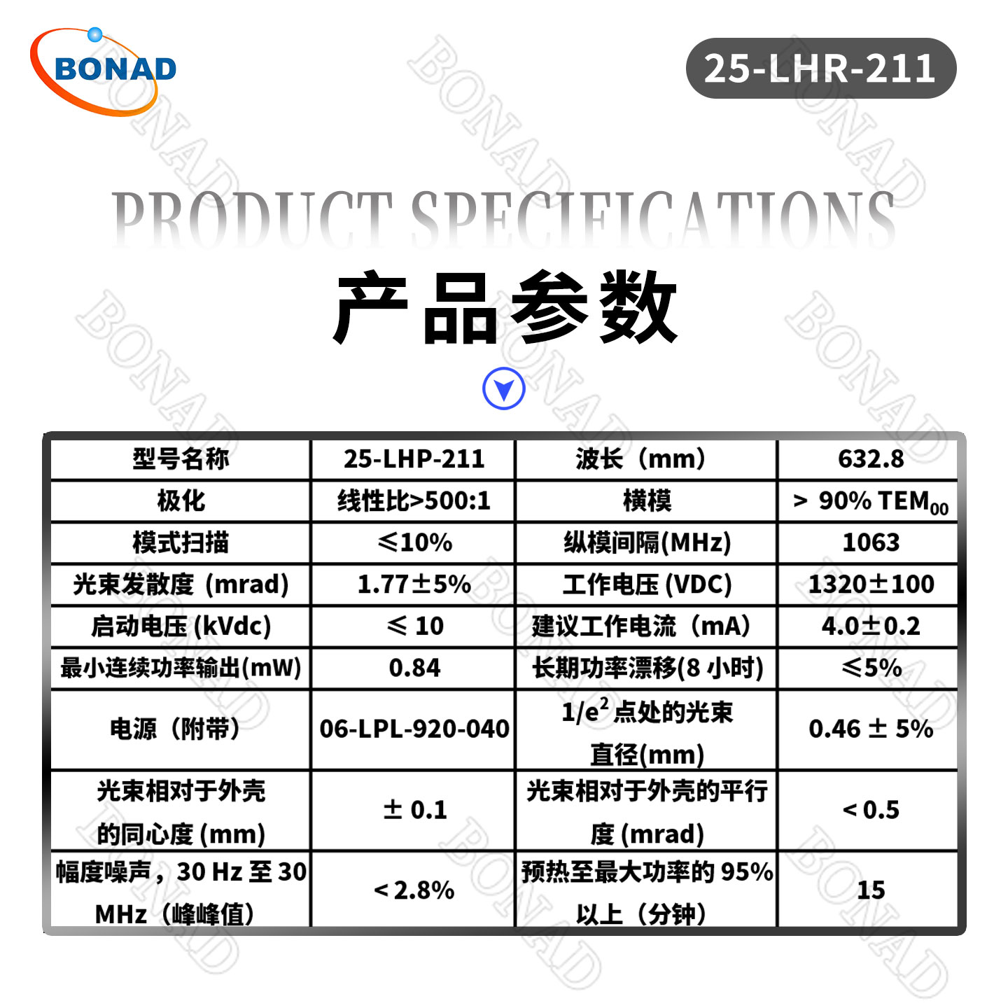 0.84mW小功率632.8 nm紅色(sè)氦氖激光係統25-LHP-211